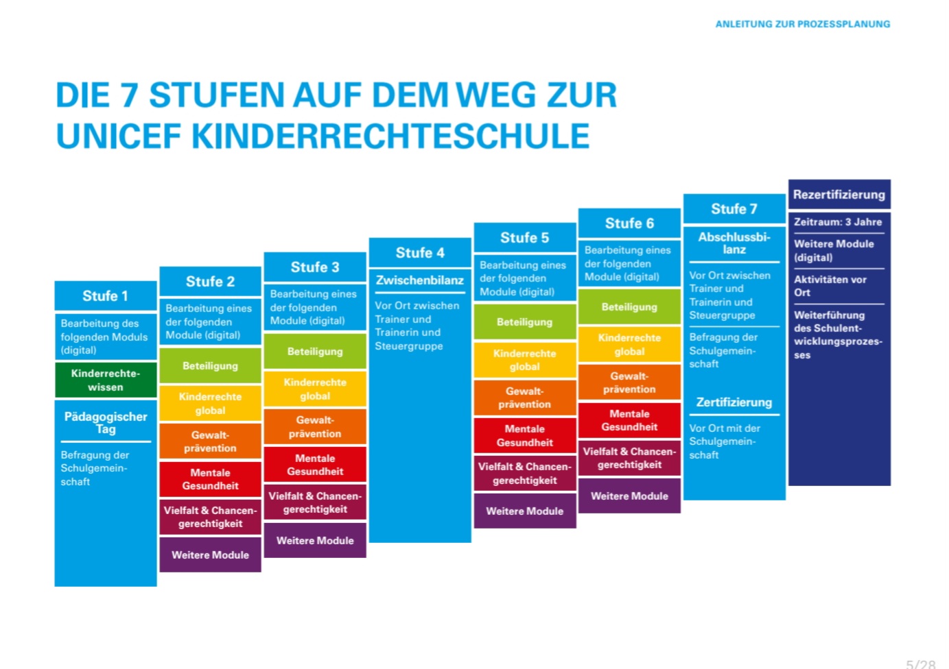 Begleitet wurden wir von den Unicef-Trainerinnen Franziska Just und Jil Holtbernd, die uns das Programm sowie die kommenden Schritte verständlich vorgestellt haben. Dabei gab es während der Arbeit in bunt gemischten Gruppen immer wieder Gelegenheit, Fragen zu stellen und erste Ideen und Gedanken im Team auszutauschen und gemeinsam unseren Weg mit den Etappen, Modulen und erster Zeitplanung zu bestimmen.
